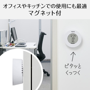 用途お部屋に合わせて選べる5つのカラー。快適度表示付き。過去の最高・最低温湿度表示付き。付属品お試し用電池(単4形乾電池(R03)×1本)材質ABS、PMMA電源DC1.5V 単4形乾電池(R03)×1本本体質量(g)約72(乾電池含む)測定方式温度:サーミスタ、湿度:抵抗変化型湿度センサー表示最高最低温湿度表示:あり寸法(幅W×高さH×奥行D)(mm)75×73×46温度測定範囲(℃)-5~50湿度測定範囲(%)20~95単位湿度:0.01表示文字サイズ時計:10 mm、温湿度:8.4 mm時計機能12時間 ・ 24時間表示湿度測定精度35 ~ 75 % ±5 % それ以外 ±10 %温度設定単位0.1 ℃快適機能3段階表示(カラカラ:湿度40%未満、カイテキ:温度17℃以上28℃以下、湿度 40%以上70%未満、 ジメジメ:湿度70%以上。これ以外の範囲の場合は、快適レベル表示なし)表示周期20 秒毎測定精度(℃)0 ~ 40 ℃ ±2.0 ℃ それ以外 ±3.0 ℃内容量1個