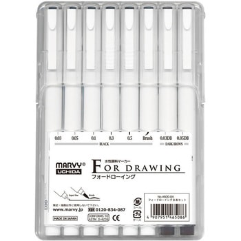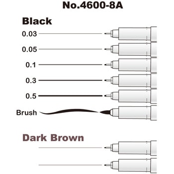 耐水性の顔料インクを使用し、ルプルームパーマネントににじまないドローイングペンです。ミリペン先はしなりにくいので、筆圧の強い方にもおすすめです。売れ筋のペン先黒インク6本に、ダークブラウン2本をセットにしました。CEマーク付き。