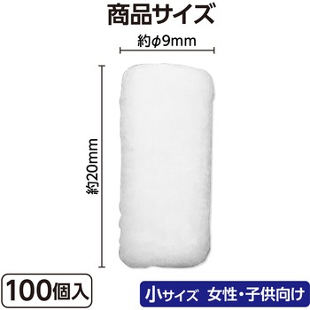 材質:綿100%。サイズ:Φ9×20mm。セット内容:本体(100入)×1