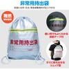 非常用持出袋×1、非常用アルミシート×1、ホイッスル(ひも付)×1、携帯簡易トイレ×1、ばんそうこう(2枚)×1、非常用食器折り紙×1、不織布マスク×1、LED懐中電灯×1、単1乾電池(2本組)×1