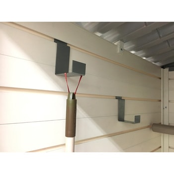 イタリア製収納庫専用のフック。収納庫の壁にある溝に合わせて設置します。かける物によって、高さの調整が可能です。耐荷重は1個あたり5kgまで。