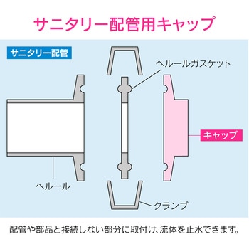 食品や飲料、医薬品、化学薬品の製造工場などで使われているサニタリー配管用の部材です。配管や部品と接続しない場合など、末端をふさぐ際に便利です。ステンレス鋼サニタリー管(JIS G3447)で規定されている配管用です。
