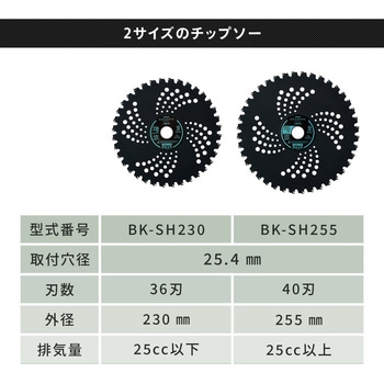 職人が認めた鋭い切れ味と耐久性。強力斜め埋込でチップ飛び軽減。刈り払機用チップソー。安心のJIS規格。