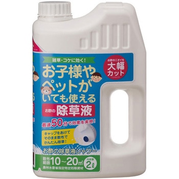 シャワータイプで楽々除草。100%食品原料のお酢を使った今までにない天然除草液。原料は食品成分のみを使用していますので、お子様やペットを飼われているお客様には安心してお使いいただけます。家の周りや駐車場のコケや雑草に。
