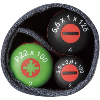 ハンドル後部に先端形状タイプ別のカラーシンボルマークとサイズの表示があるため、作業に適したドライバーをすぐに識別できます。