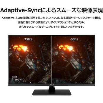 75Hzのリフレッシュレートと、画面のカクつきやチラつき、フレームレートの低下を解消するAdaptive-Sync/FreeSyncTM機能を搭載