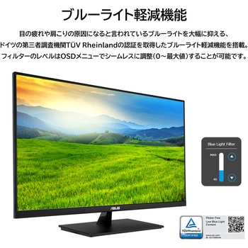 TUV Rheinland認証を取得したブルーライト軽減機能とフリッカーフリー技術を搭載し、快適な視聴体験を提供