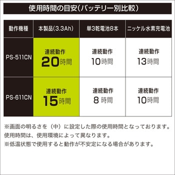 一般的な電池の約2倍の使用時間を確保できます。