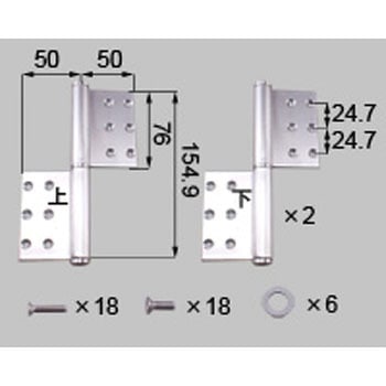 k2用 丁番(上)×1、丁番(下)×2、高さ調整スペーサー×6、皿小ねじ(M4×12)×18、皿小ねじ(M4×20)×18