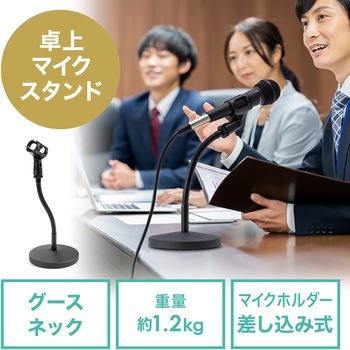 フレキシブルアームで自由にマイク位置を調整できるグースネックタイプの卓上マイクスタンドです。