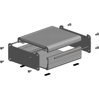 上面がヒートシンク形状で、効率良く放熱が出来る形状の熱対策アルミケースです。カバー内部を無処理とし、導電性ガスケットを使用する事でEMCシールド効果を持たせたケースです。