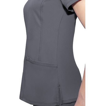 女性専用ならではの美しく、すっきり魅せるシルエットです。優れた伸縮性で、スポーツウェアの様な着心地です。ソフトな肌ざわりや防皺性(ぼうしわせい)に優れ、ケアもしやすい素材を採用しています。両脇に外ポケットがあり、両方に印鑑などを収納できるコインポケットが付いています。全世界で年間500万枚以上の販売実績のある、ニューヨーク発のスクラブメーカーです。