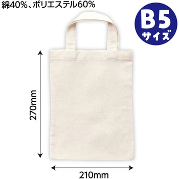 B5サイズの書類やファイルが入るエコバッグ生成色の柔らかな綿混エコバッグです。マチがないので、厚みの少ないB5書類やクリアファイルなどが自重で曲がることを防いで持ち運ぶことができます。材質:綿:40%、ポリエステル:60%。サイズ:270×210mm