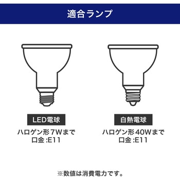 LED電球:ハロゲン形 7Wまで、白熱電球:ハロゲン形 40Wまで(※数値は消費電力です。)