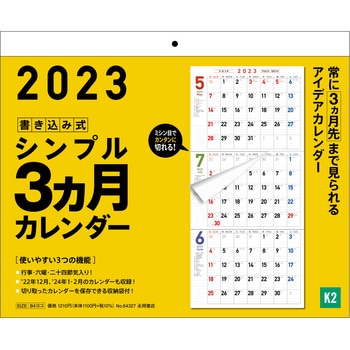 ひと目で3カ月の予定がわかる行事・六曜・二十四節気入りのカレンダー。前年12月、翌年の1、2月のカレンダーも収録!1ヵ月をミシン目でカンタンに切り取れて、予定をたくさん書き込めます。切り取ったカレンダーを保存できる収納袋付き!(1ヵ月・B4判/タテ295×ヨコ350ミリ)
