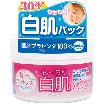 ホワイトラベル贅沢プラセンタのもっちり白肌パック30秒おいて洗い流すだけで、プラセンタがキメを整えしっとりつるつる肌に。