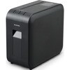 静音設計45dB(空転時)、使用時の音が気にならないパーソナルシュレッダーです。椅子に座ったまま細断可能です。細断サイズが約4×25mm(クロスカットタイプ)。機密情報のセキュリティにおすすめです。一度に投入できる最大細断枚数は6枚です。ダストボックスにはA4コピー用紙を約60枚収容できます。インテリアに調和するシンプルなデザインなので、オフィスやリビングでも使用できます。