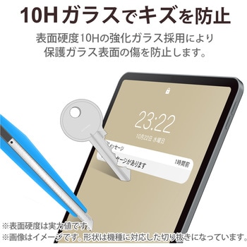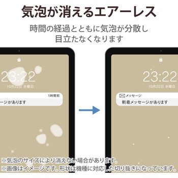 ガラス特有のなめらかな指滑りを実現するiPad 第10世代(2022年モデル)用ガイドフレーム付の液晶保護ガラスです。フィルムがキレイに貼れる専用ガイドフレーム付きです。機器本体にガイドフレームを取り付けることで、ガラスフィルムを置くだけで簡単に位置決めができます。ヘラと、クリーニングクロス、ホコリ取りシールが付属しています。表面硬度10Hの強化ガラス採用により、保護ガラス表面の傷を防止します。 ※表面硬度は実力値です。握ったときやカバンからの取り出し時にも引っかかりがない、ラウンドエッジ加工を施しています。指紋汚れを付きにくくする指紋防止コーティングを施しています。万が一、割れてしまった場合もガラス片が飛散しにくい安全設計です。フィルムを貼ったままでも本体操作ができるタッチスクリーン入力に対応しています。貼り付け面にシリコン皮膜をコーティングし、接着剤や両面テープを使わずに貼り付け可能な自己吸着タイプです。貼りやすく、貼り直しも可能です。時間の経過とともに気泡が目立たなくなる特殊吸着層を採用したエアーレスタイプです。小さな気泡ができたときには、指などで押し出すことで気泡を抜くことができます。端末の形状に合わせたサイズにカット済みなので、パッケージから取り出してすぐに使用可能です。自社環境認定基準を1つ以上満たし、『THINK ECOLOGY』マークを表示した製品です。環境保全に取り組み、製品の包装容器が紙・ダンボール・ポリ袋のみで構成されている製品です。