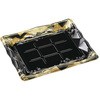 フォルムが美しい寿司容器。にぎり3×6貫用または手巻き約6本用。外嵌合タイプ。