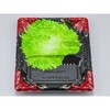 浅く細かい仕切り形状でボリューム感を演出。四隅のカラー配置で、陳列方向に縛られません。底面の鮮やかなレタス柄が、食材の見栄えを上げます。同型の黒板目Lとの使い分け可能。選べる3種の蓋(別売り)。ごはん容量:浅蓋時/約150g、通常蓋時/約180g、高蓋時/約230g。