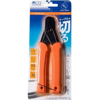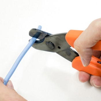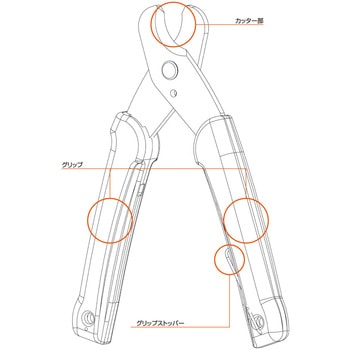 大型のカッター部としっかり握れるグリップで、ケーブルの切断に特化した工具です。太めのケーブルでも、軽い力で切断が可能です。一般的なLANケーブルやモジュラーケーブルに加えて、太めのケーブルも切断可能。アンテナケーブルや同軸ケーブルもカットすることが可能です。グリップ部分を固定できるグリップストッパーを搭載。使用しない時はカッター部が開かないように固定でき、安全です。