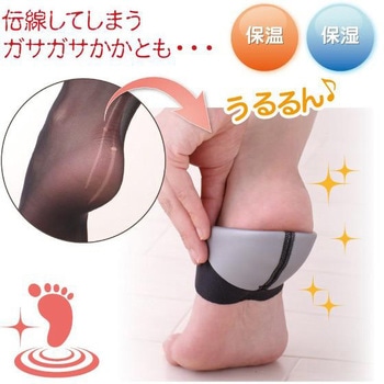 ストレッチ性があり足にぴったりフィット。ナイロンジャージのソフトな肌触りで気持ちいい履き心地。気密性の良いクロロプレンゴムにチタンをコーティング加工した3層構造だから、内側から保温効果を高め外気をシャットアウト。保温と保湿でつるんとしたかかとをめざします。足指は付いていないので、ムレ感なくかかと保湿ができるので、家事をしながら、入浴後、リラックスタイムなど手軽に着用いただけます。