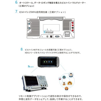 【多機能統合の高性能オシロ】XDS3000シリーズは、オシロスコープ、信号発生器(オプション)、マルチメーター(オプション)、データロガー、周波数カウンタ、プロトコル解析を1台に統合。最大1GSa/sサンプリング、40Mメモリ長、最大70,000波形/秒の高速更新で安定した波形観測を実現。研究・開発・電源評価・教育用途まで幅広く対応する高機能オシロスコープです。