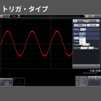 【多彩な測定・解析機能】エッジ・ビデオ・スロープ・パルストリガに対応し、信号の異常を的確に捉えます。演算機能(+,-,×,÷,反転,FFT)やX-Yモードも搭載しており、周波数解析や波形比較が可能。電子設計や品質検証の効率を高めます。