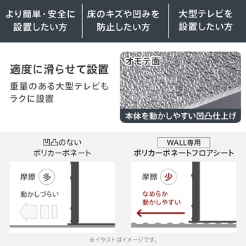 WALL V3ロータイプ専用オプションのコーナー自立ベースの下に敷いて床を保護するポリカーボネート製の専用シートテレビスタンドを移動させる際に床を保護し、スムーズに動かせるようになります。テレビスタンド用のポリカーボネートフロアシートと連結させて使用します。この商品単品ではお使い頂けません。