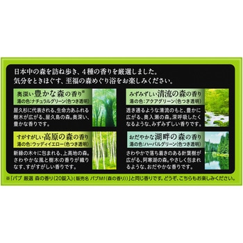ドクターから「バブなどの炭酸力のある入浴剤は体の中から温まる効果が高い」と聞いて冬は特に愛用です。が、あまり甘すぎる香李は、家族内でも好みがわかれてしまいますが、森めぐりは森林浴をしているような気分になる香りで、すっきりリフレッシュです。