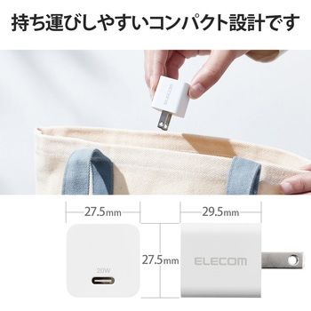 USB Power Deliveryに準拠したUSB Type-C(TM)(USB-C(TM))ポートを搭載し、対応するスマートフォン、タブレットなどを超高速充電できるUSB AC充電器です。手のひらにすっぽり隠れるほど小さく、軽量なので外出や出張などの際の持ち運びに便利です。