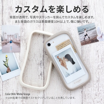 【耐衝撃】 衝撃を吸収・分散するハニカム構造のTPUと、高硬度10Hで傷に強いガラスのハイブリッドケース/側面全体がなめらかにラウンドした持ちやすいデザイン/ボタンやカメラレンズを保護する精密設計/ストラップホール搭載(側面)/写真やステッカーを使ったアレンジも楽しめる背面クリア仕様/ショルダーストラップの取り付けに最適な「挟み込みシート」付属