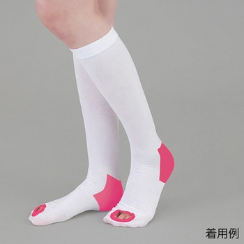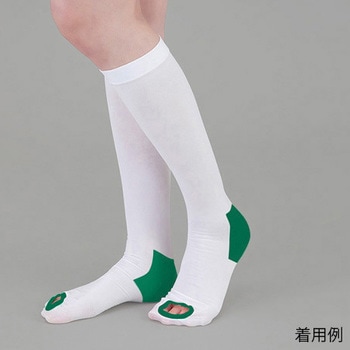 脚の血液還流を促進させるため、段階的に着圧を減少させる、段階圧力設計です。術中だけでなく、術後や退院後にも使用可能です。足裏部分には滑り止めがついているため、滑りにくくなっています。