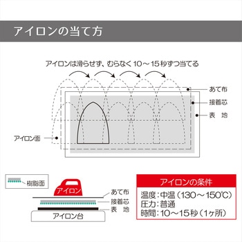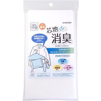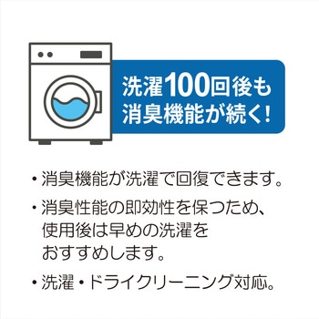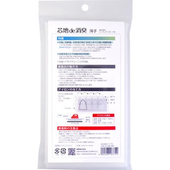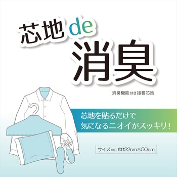 芯地を貼るだけで、汗臭・加齢臭・ムレた足など、気になるニオイをスッキリ消臭!ニオイの気になるシャツやまくらカバー、ハンガーカバーなどに最適。アンモニアはもちろん、ノネナール(加齢臭)・酢酸(汗臭)・イソ吉草酸(ムレた足のニオイ)など、多種類のニオイを消臭する性能があります。芯地に吸着されたニオイは、水洗いをすることで消臭性能が回復!洗濯100回後でも高い消臭性能を保持しています。