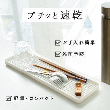 横長デザイン、厚さは約16mmのスリムな水切りトレーで全てが解消です。