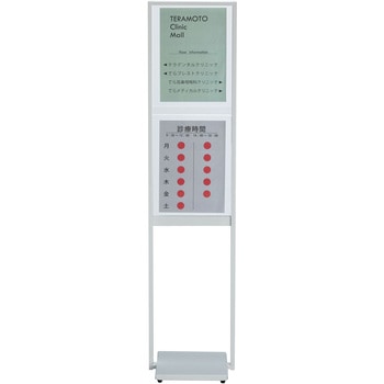 1台で上下2段、両面使用で最大4面の表示が可能。エントランスをすっきりした印象にする案内板です。