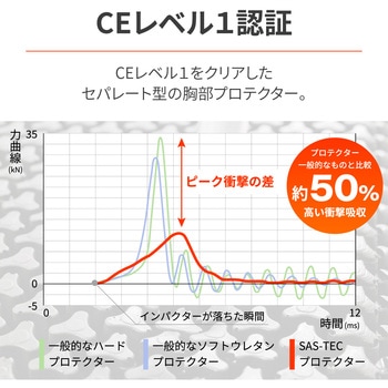 いざという時は瞬間硬化して衝撃を吸収:本体の素材は衝撃が加わったときに瞬間硬化する特殊な発泡ウレタンを使用。繰り返しの衝撃にも吸収性を失わずライダーの体を守ります。全てCE規格を取得。