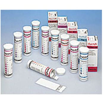 呈色試薬を含んだ試験紙とサンプル液中のイオンとの特異的反応を利用し半定量を行います。測定は試験紙を検液に浸し、変色度を外箱のカラースケールと比較するだけです。サンプルは微量でよく、イオン選択性も大変優れています。プラスチックスティック(0.2mm厚)の端に貼り付けてある試験紙はカラースケールと同じサイズで色比較が大変明瞭にできます。