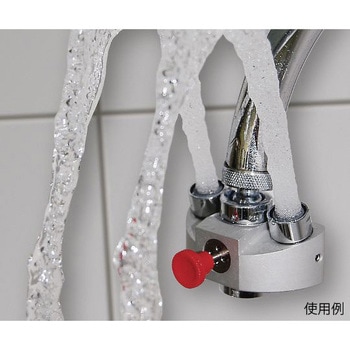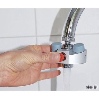 緊急時の洗眼以外にも通常の蛇口に切り替えて使用が可能です。適合するねじ口に合わせて取り付けるだけで使用可能です。水を流すと最初は洗眼ロから水が出ます。ボタンを押した後でも水を止めると、ボタンが自動で引いた状態に戻ります。