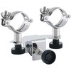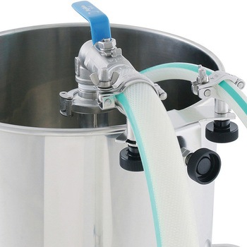 ステンレス容器の縁にホースの先端を固定できる金具です。
