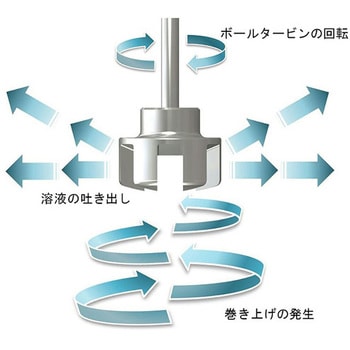 高速回転させることで強力な吐出流と巻き上げ流を発生させることができ、高粘度溶液を隅々まで撹拌します。