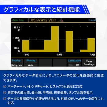 特に便利なのは、大きく見やすい4.3インチのカラーディスプレイとグラフ表示機能です。測定値の変化を視覚的に確認できるため、学生にも理解しやすく、指導の際にも役立っています。また、LANやUSB経由でパソコンと接続でき、PythonやLabVIEWを使った自動計測にも対応しているので、データロギングや統計処理の教育にも応用できます。