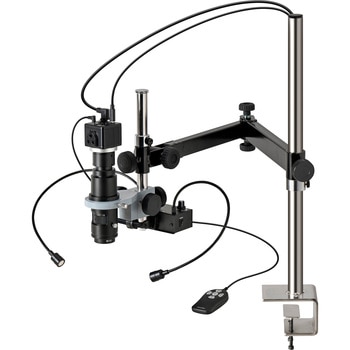 HDMIでモニターに映像を出力できるフルHDのカメラのセットです。フレキシブルアームのスポット照明付き。レンズは倍率のみ調整可能なズームレンズで、補助照明が無い環境でもある程度使用可能です。机などにクランプで取り付ける頑丈なロングアームにより、作業スペースを確保したまま使用時には引き出し、使用後は端へ避けるといった使い方が可能です。