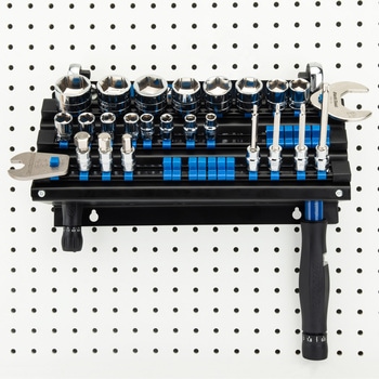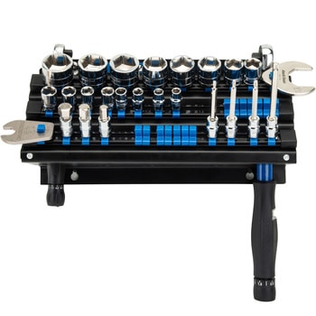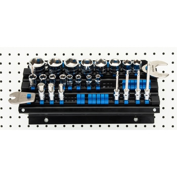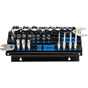 このJH-3は、3列の可動式ビットホルダーにより、差込角9.5mm角(3/8"sq用)のビット、ソケットなどの工具を整理して収納できます。最後部には切欠きがあり、トルクレンチやドライバー、ラチェットレンチなどを便利に収納できます。スチール製のボディに粉体塗装を施し、高い耐久性を実現。長年にわたりご使用いただけます。
