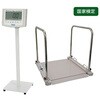指示計と計量本体部は無線通信接続の為、患者の転倒リスクを排除し、ケーブル断線の心配もありません(指示計と計量本体間通信は5m以内)。軽量・キャスター付きなので持ち運びが容易です。手すりを持ったまま体重測定ができます(車いすごとでも可)。載台面高さ25mmの低床タイプです。