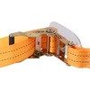 折り返し縫製で二重に縫い付けた強度の高い繊維ベルトだから安全に荷締めができます。