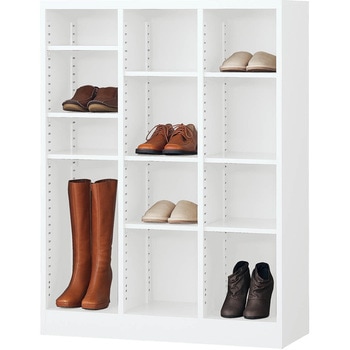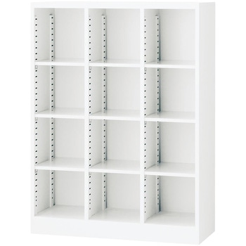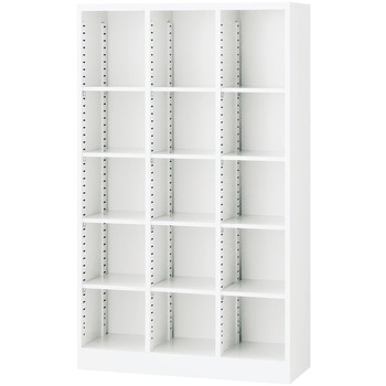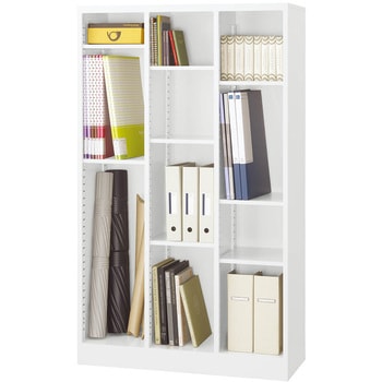 列ごとに棚板の位置や枚数を設定できるので、大きさの異なる収納物を効率よく収納できます。 よく使用するA4判ファイルから長尺物まで、混在収納が可能です。 オープン書庫としての利用の他、図面収納、シューズボックスなど様々な用途にご利用いただけます。 棚板は30mmピッチで設定可能です。