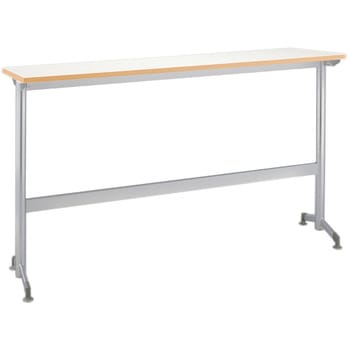 離着席のしやすいT字型脚を採用しているテーブルです。荷物を掛けれられるフックが天板下についてます。机をとなり合せにしてもフックは使用可能です。フックは内側を向いており、盗難防止や歩行者との接触などに 配慮しています。床掃除の時、モップ等が入りやすいよう配慮した脚形状になっています。