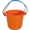 丈夫で持ちやすいバケツです。モルタルなどの撹拌に適しています。本体の口元は折り返しがついており強度を持たせています。本体の材質は柔軟性の高いEVA、LLDPEを使用し、割れ難くなっています。内側には目盛刻印付です。