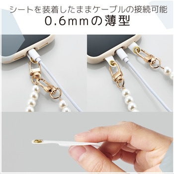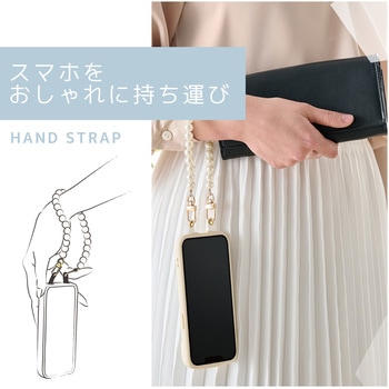 手首に通して使えるパールタイプのスマートフォン用ハンドストラップです。手首や腕から提げて持ち歩けるので、両手がふさがらずいつでもサッとスマートフォンの操作ができます。パールとゴールドの金具で、カジュアルなスタイルにも映える上品なパールタイプです。ケーブル穴1口用とスピーカー穴2口用の2種類のストラップホールシートが付属しているので、お使いのスマホケースにストラップホールがなくても使用できます。